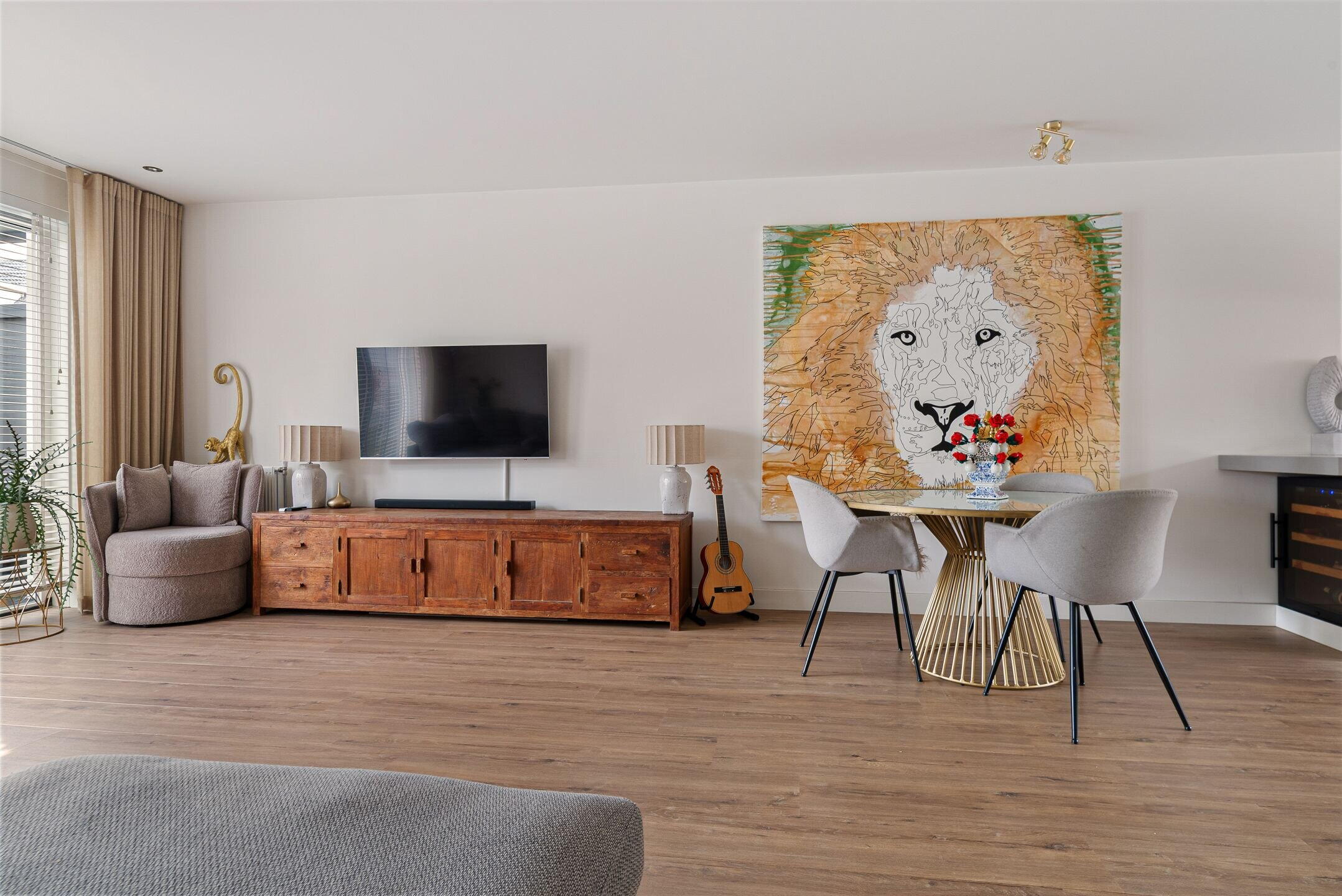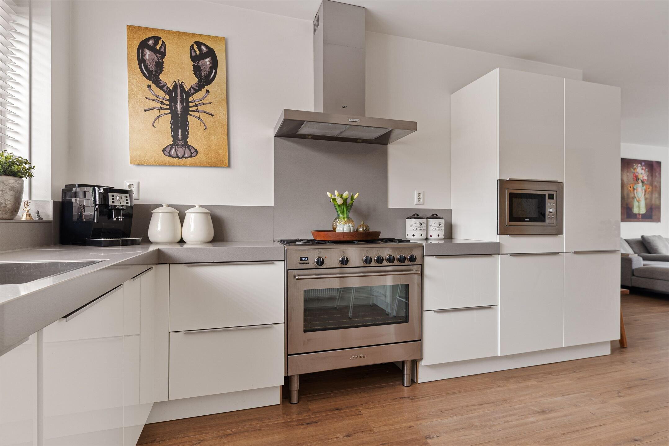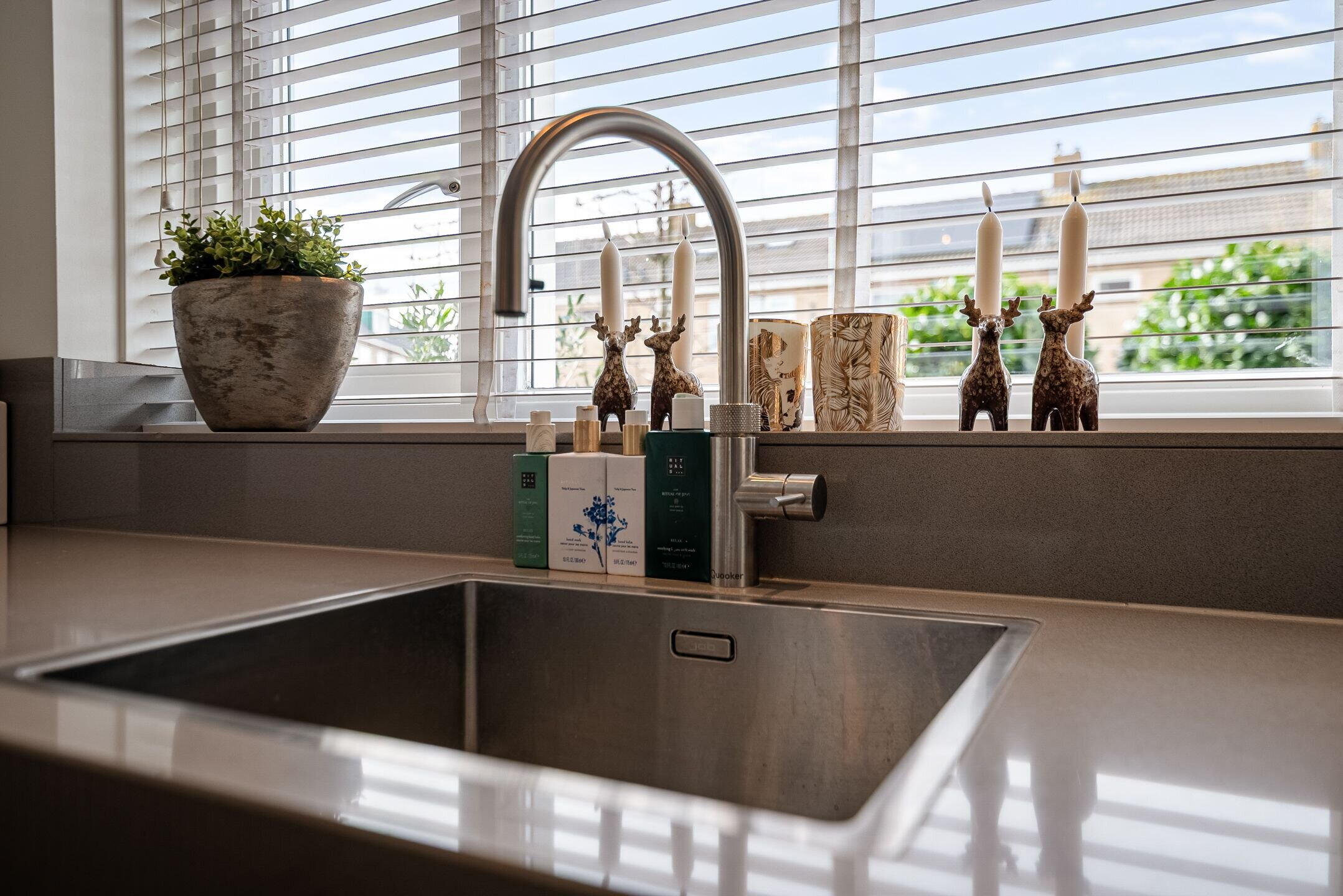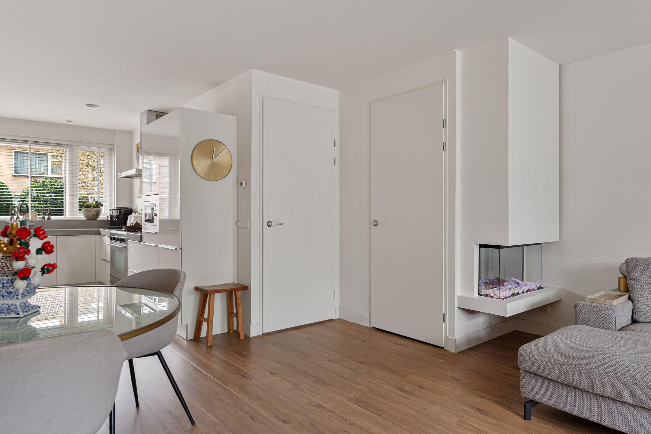 Bij binnenkomst valt direct de verzorgde en moderne afwerking op. De lichte woonkamer biedt een fijne leefruimte met een prettige verbinding naar de tuin. Grote raampartijen zorgen voor veel daglicht en een ruimtelijk gevoel. Aan de voorzijde bevindt zich de luxe keuken, compleet uitgevoerd met moderne inbouwapparatuur en volop werk- en bergruimte – een heerlijke plek voor kookliefhebbers. De begane grond is praktisch ingedeeld en vormt een fijne leefruimte voor het hele gezin.